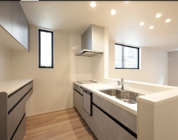 新築/角物件/フローリング/システムキッチン/温水便座付トイレ/駐車場/カウンターキッチン/TVインターホン/浴室乾燥機/追炊き機能/ウォークインクローゼット/洗髪洗面化粧台/ |