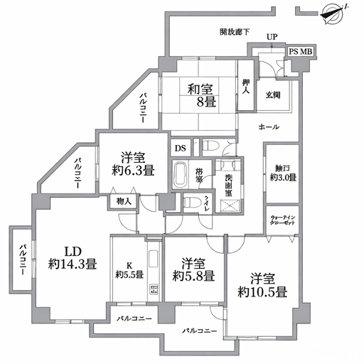 東・南・西の三方角部屋 眺望・通風・採光良好 |