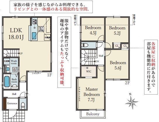 新築/フローリング/システムキッチン/温水便座付トイレ/駐車場/カウンターキッチン/TVインターホン/浴室乾燥機/追炊き機能/ウォークインクローゼット/洗髪洗面化粧台/ |